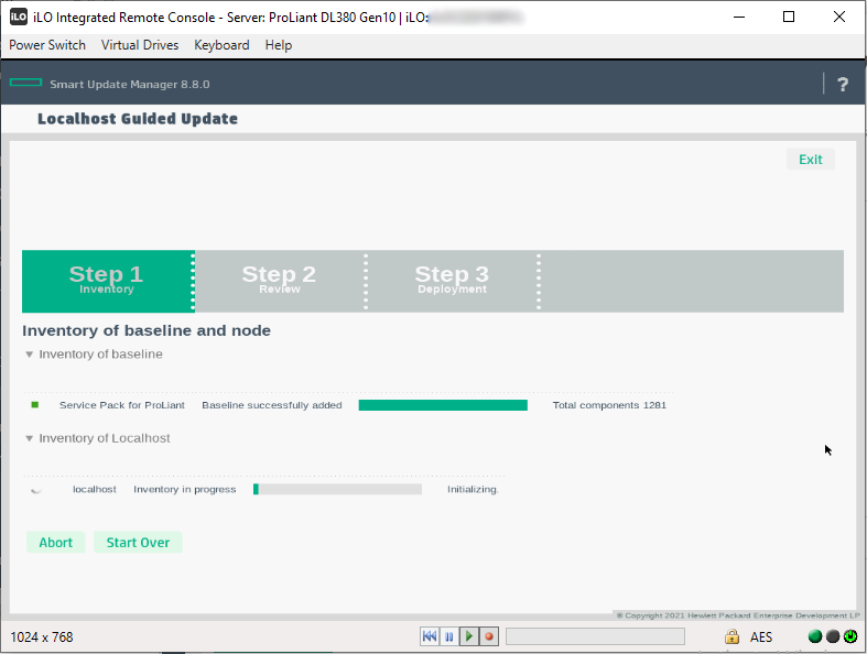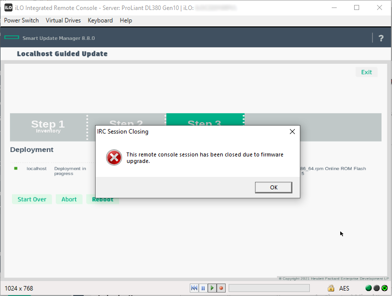 در این مرحله با توجه به شکلهای زیر آپدیت شروع میشود و در ابتدا آپدیت iLO شروع و ارتباط کنسول iLO قطع میشود: